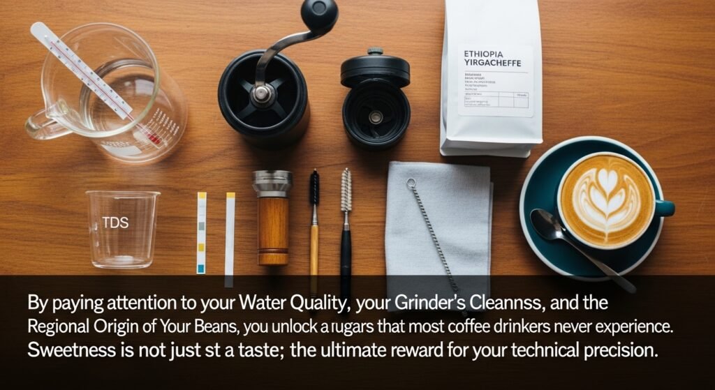 If you experience a dry, “puckering” sensation (astringency), the sweetness has been compromised, likely by Poor Equipment Hygiene or over-extraction. A truly sweet coffee leaves you with a lingering “memory” of sugar that makes you crave the next sip. This is the hallmark of High-Altitude, Dense Beans that have been treated with technical respect.